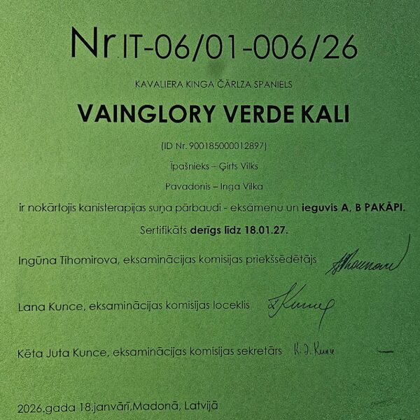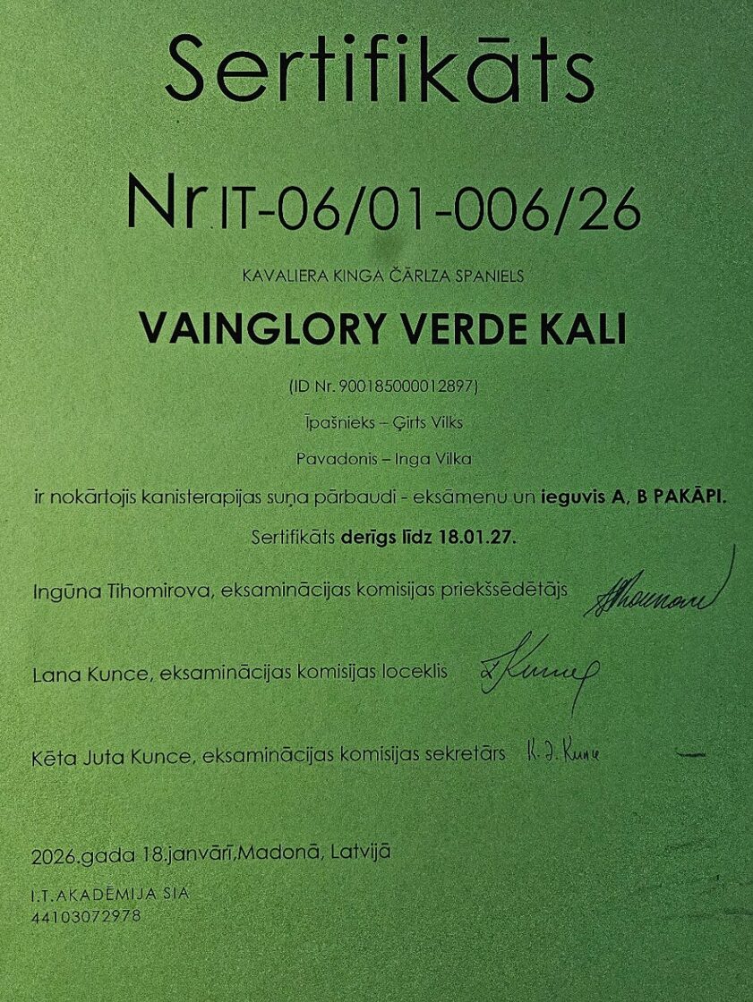 Suņa terapeita sertifikāts B puse