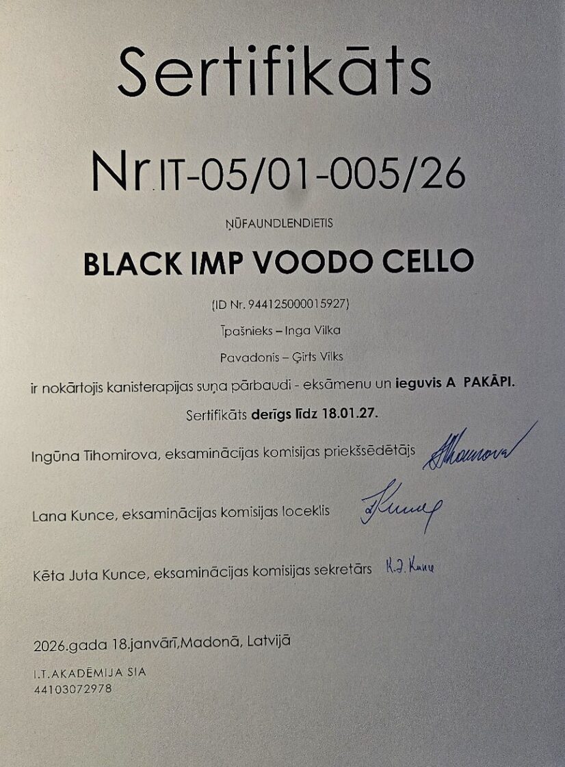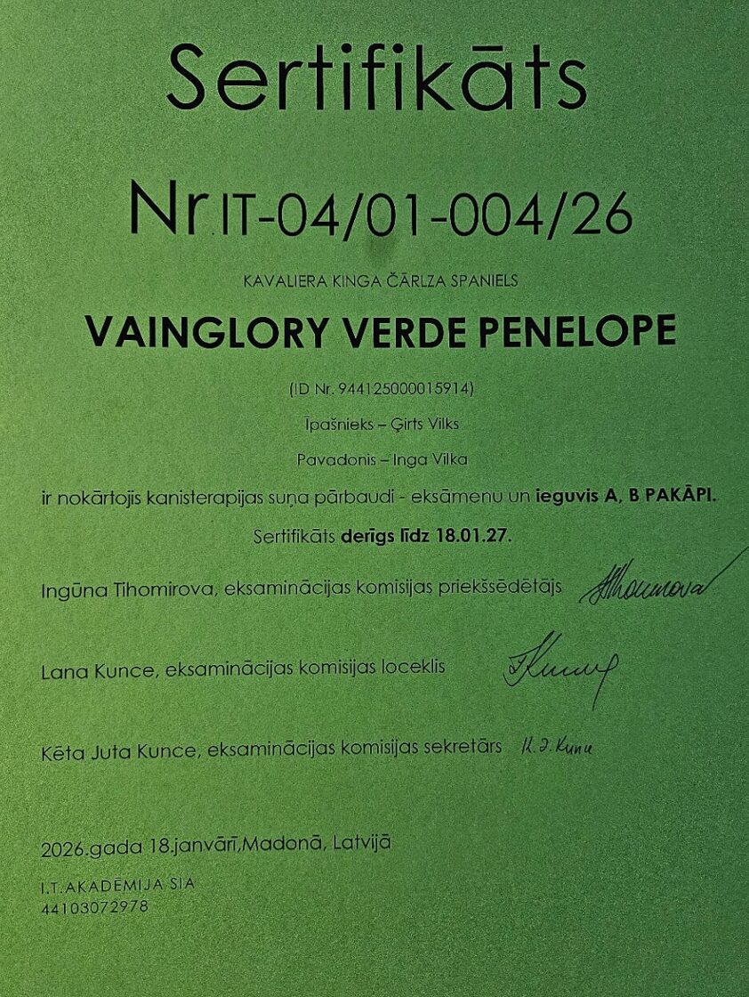 Kanisterapijas un papildus izglītības sertifikāti